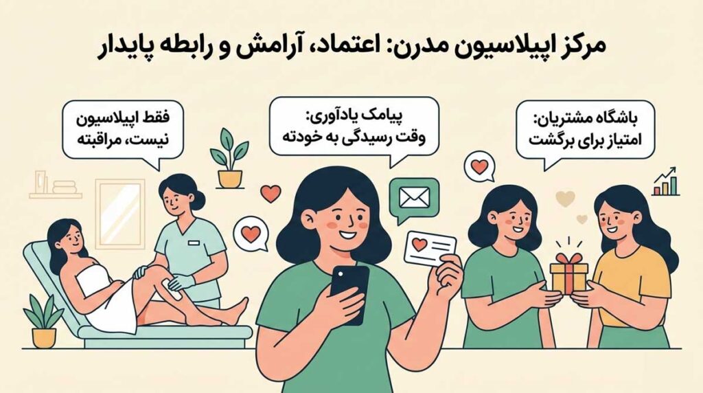 - اطلاعات تماس و برند: نام مرکز، آدرس و راههای ارتباطی باید در متن تبلیغ اپیلاسیون درج شوند.